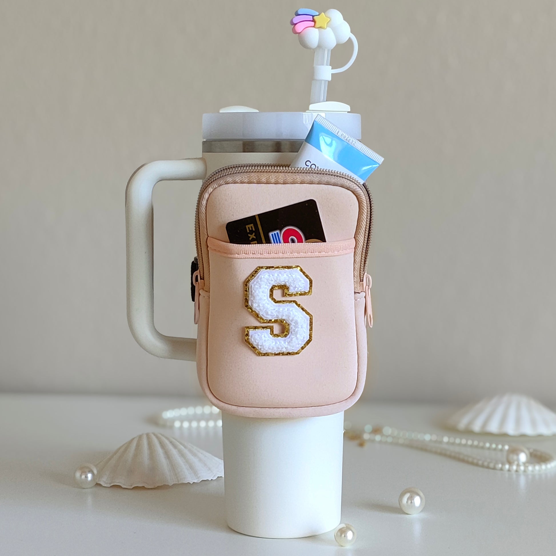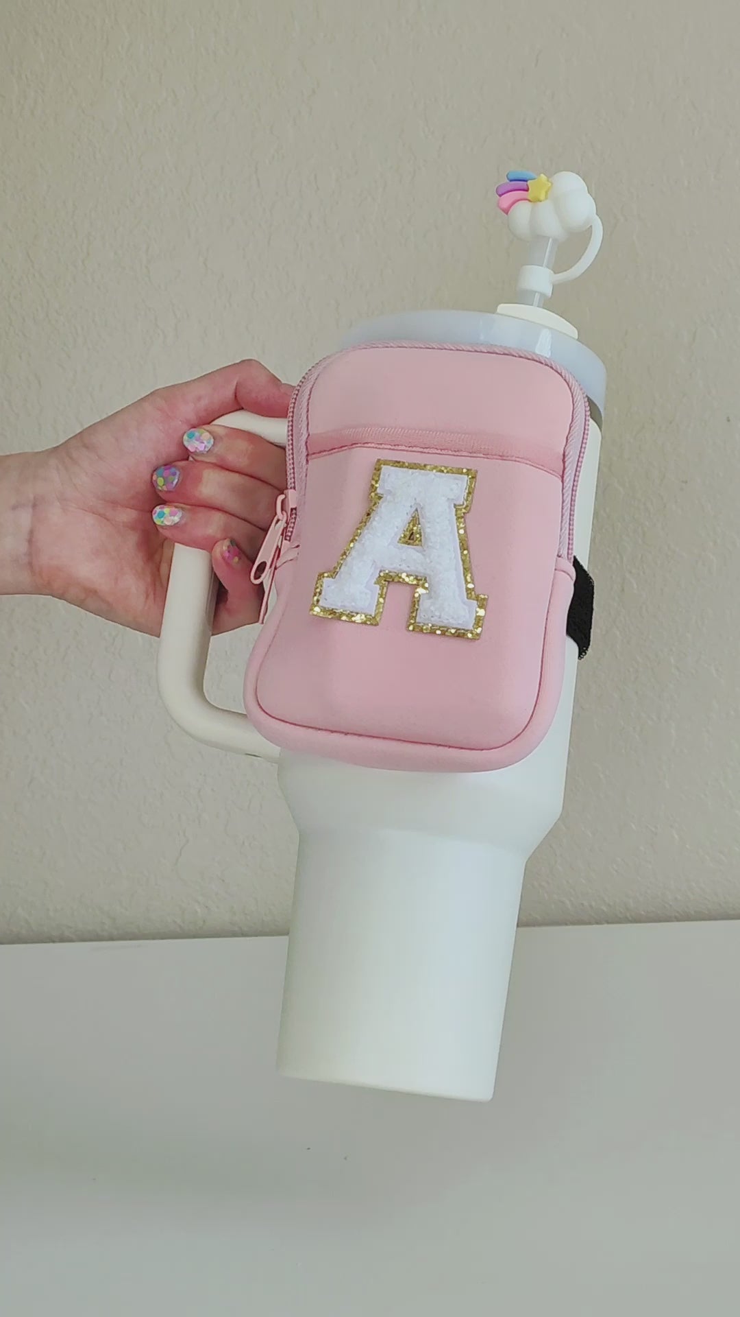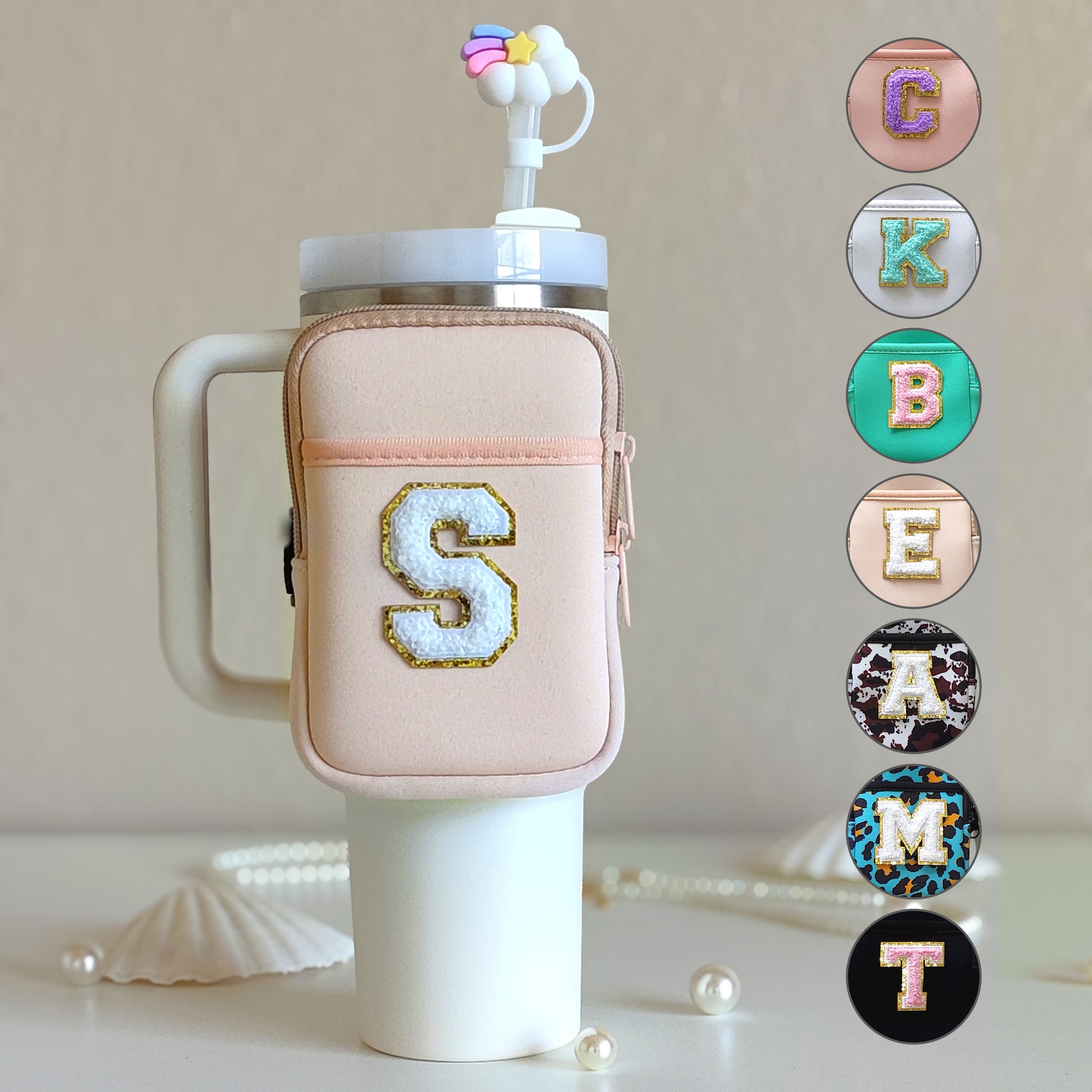 🌈 Select your preferred tumbler pouch color and Chenille letter color.