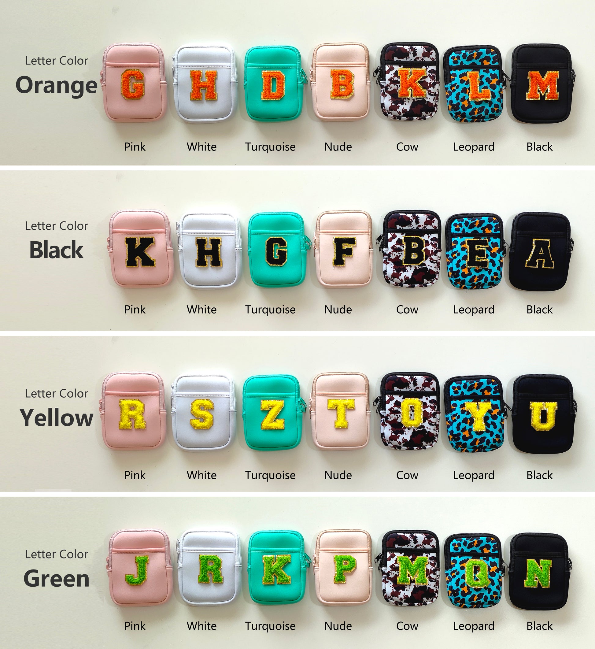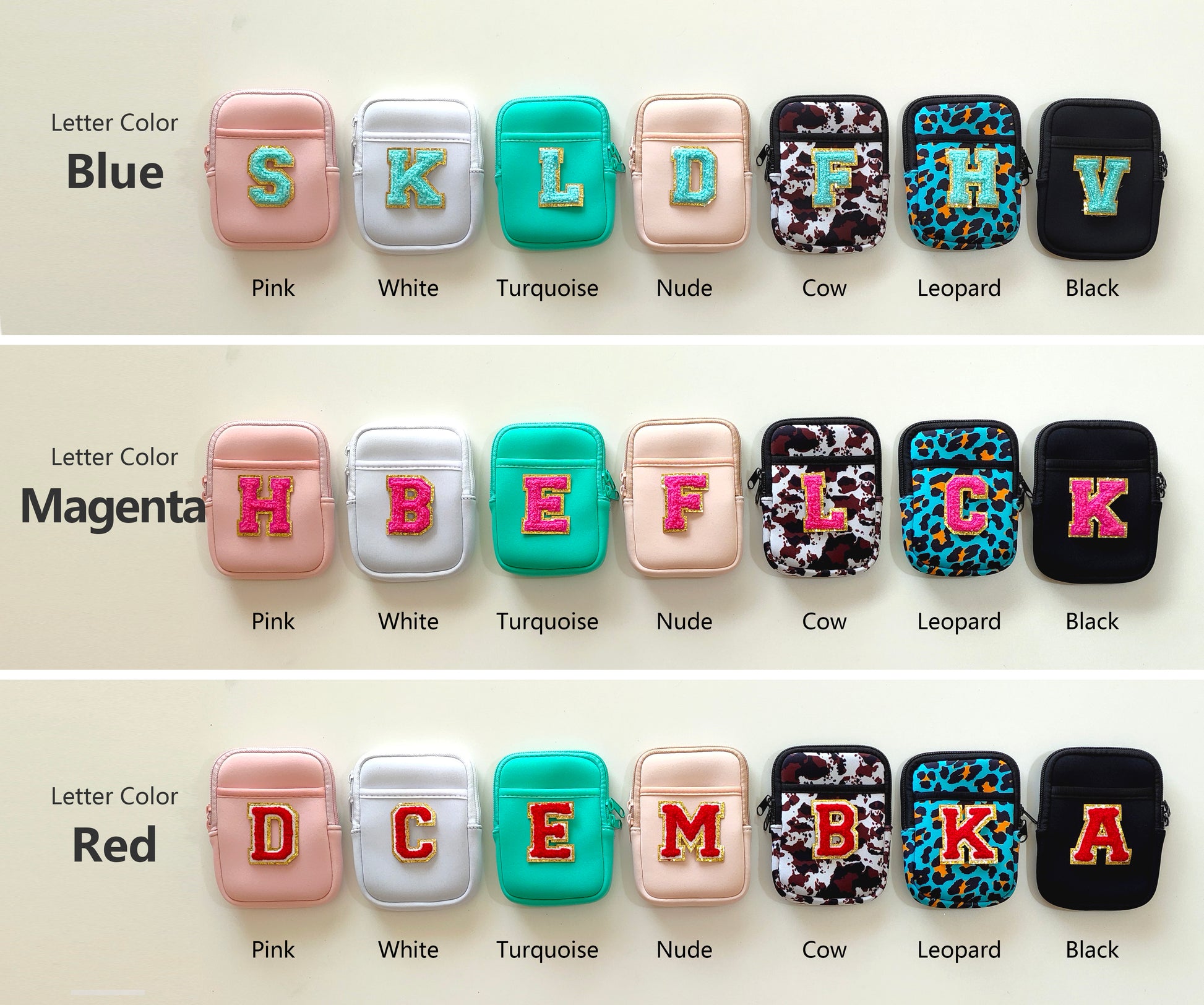 🎨 Choose from various pouch and letter colors to suit your style.