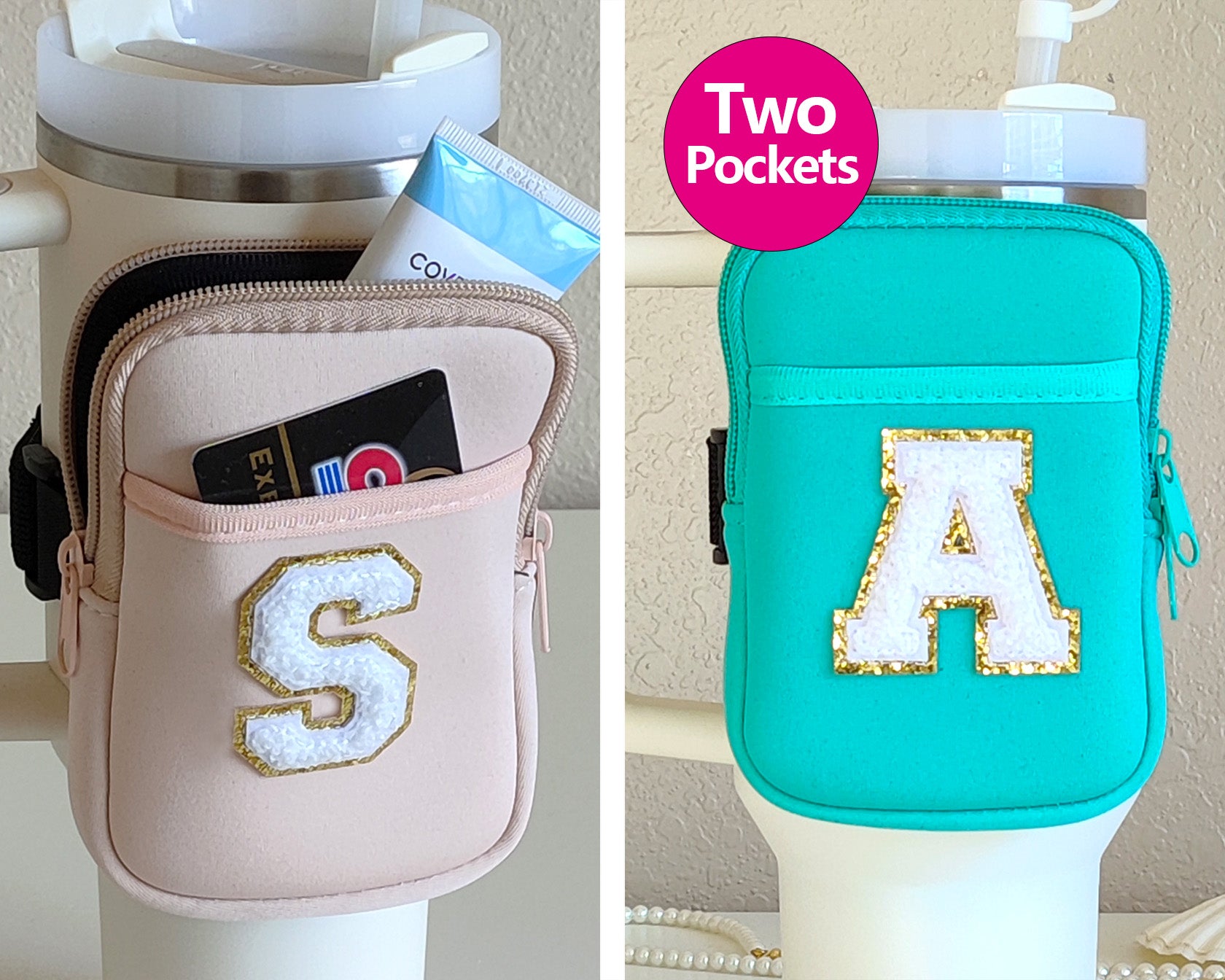 2 pockets Custom Stanley Tumbler Pouch Personalized Water Bottle Bag Chenille Pouch Fanny Pack 40oz 30oz Stanley Cup Accessories Bridesmaid Gifts Mom