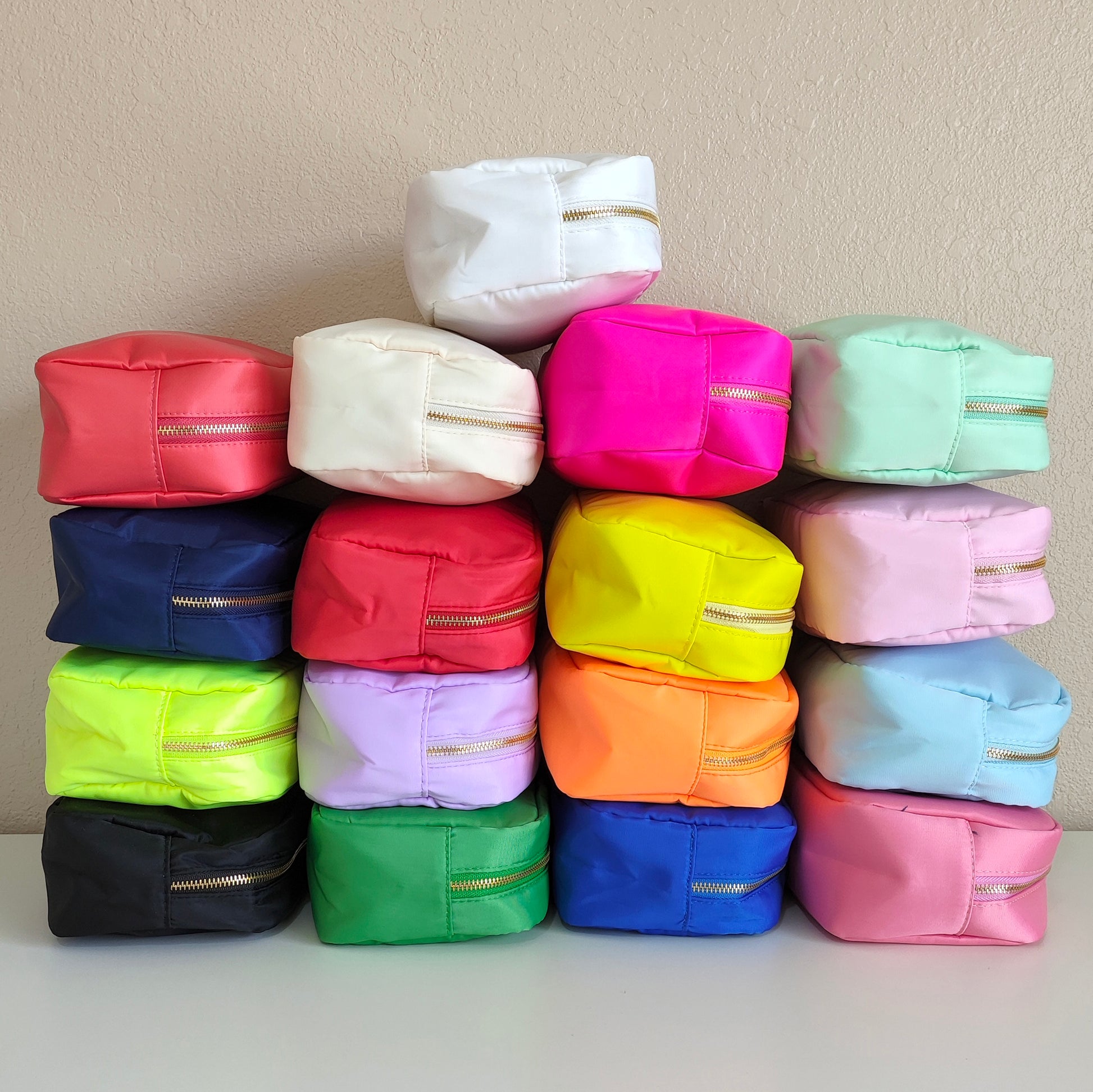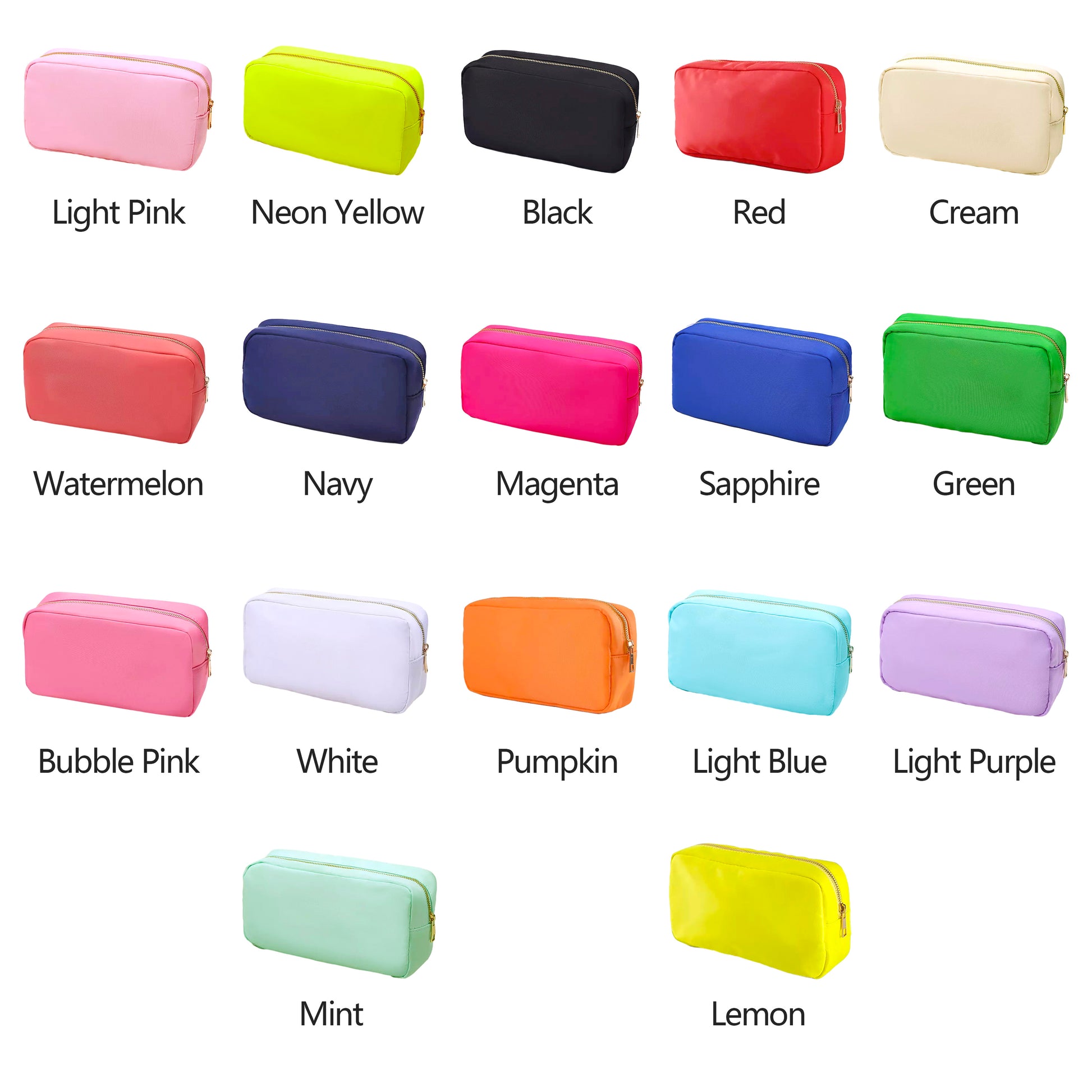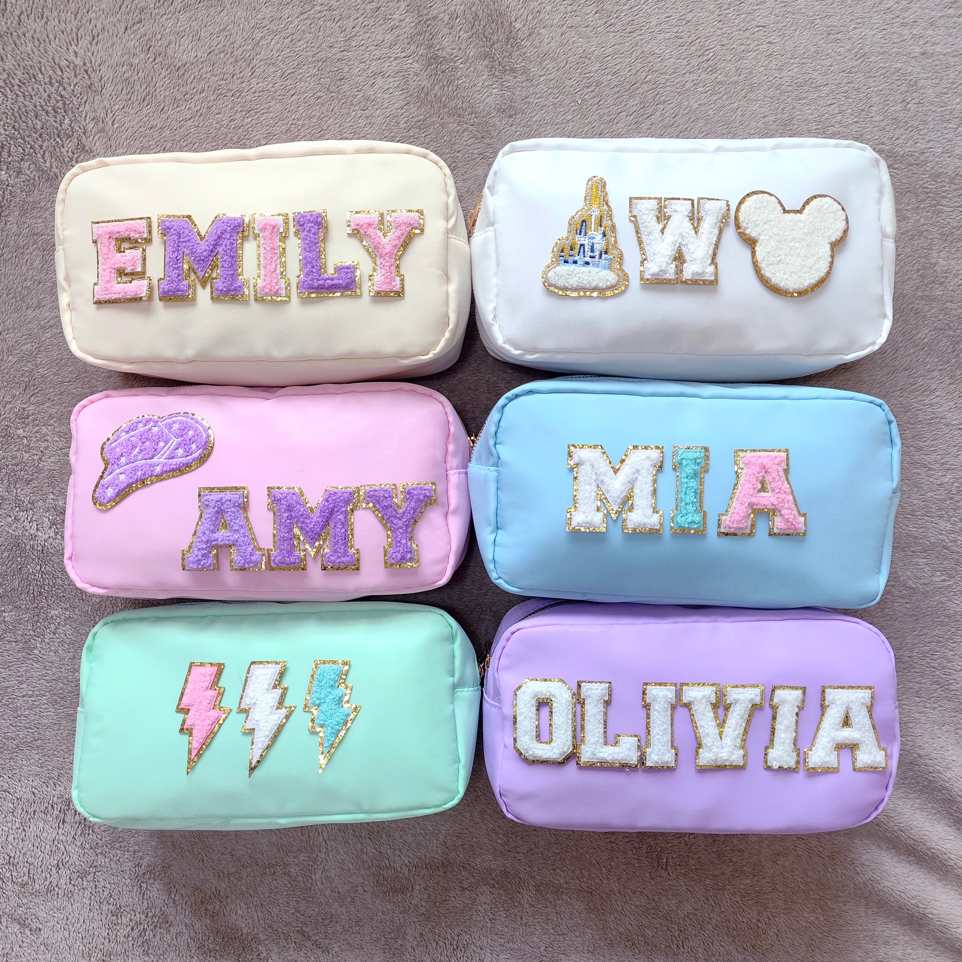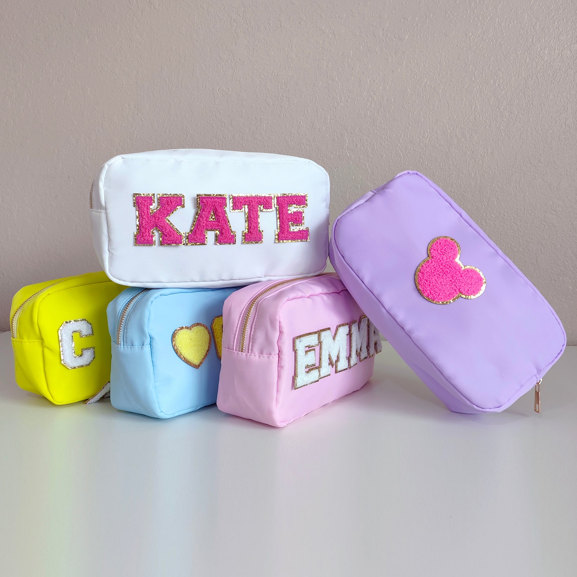 Meet our personalized nylon makeup bag with hand-stitched letter patches! Ideal for travel, snacks, and makeup storage, this bag combines practicality with a personalized touch. Choose your letter colors for a unique and thoughtful gift. With a spacious interior, perfect for organizing makeup accessories, and an extra-large capacity for all your beauty essentials. Compact and convenient for on-the-go style.