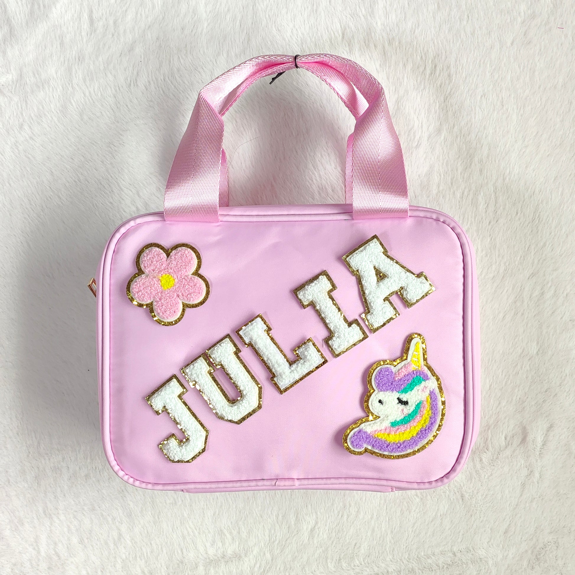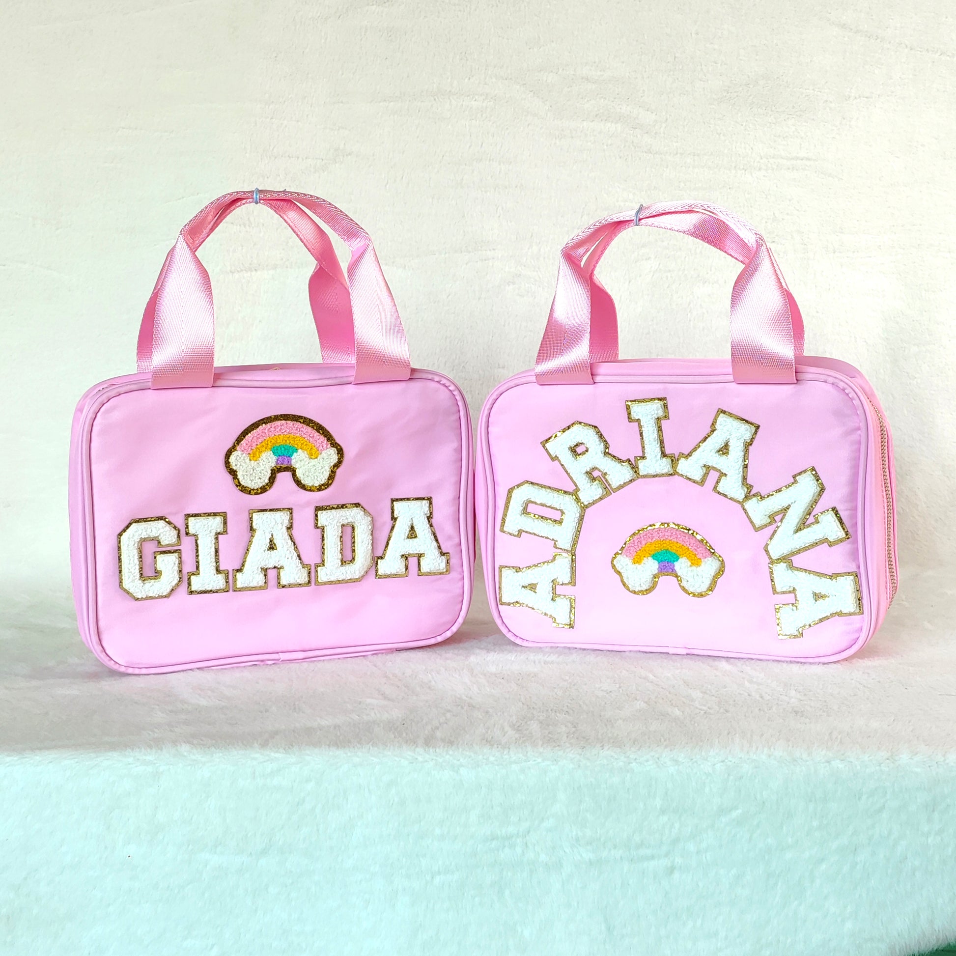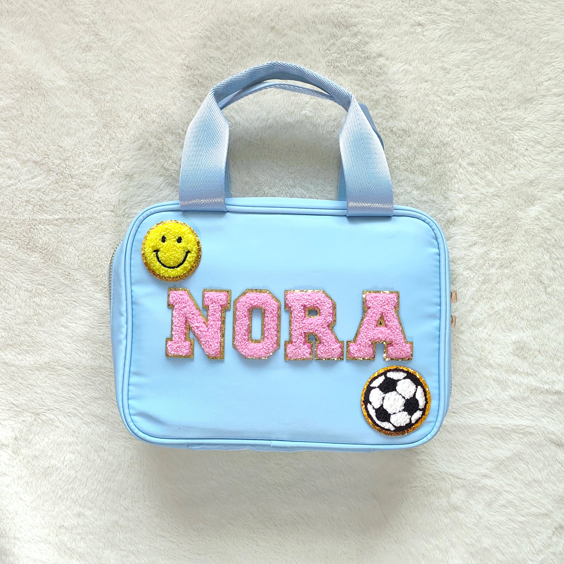 Personalized Lunch Box Bag Custom Lunchbox with Patches for School Kids Nylon Chenille Letter Lunch Bag Insulated cooler Sports Travel Bento